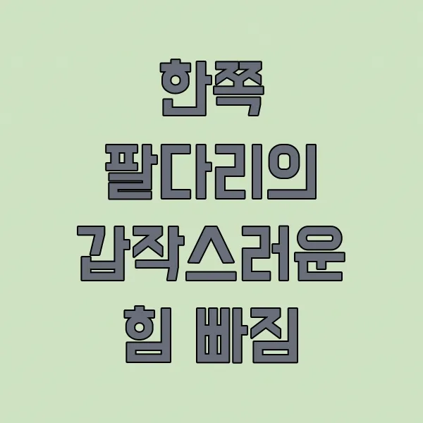 이런 증상은 한쪽 팔이나 다리에서만 나타나는 경우가 많아서 , 무심코 넘어가기 쉽지만 절대 간과해서는 안 되는 중요한 신호예요. 평소보다 훨씬 무겁게 느껴지거나, 물건을 떨어뜨리는 횟수가 잦아진다면 주의 깊게 살펴보세요!