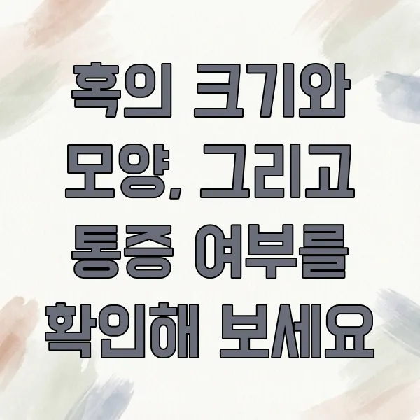 혹의 크기와 모양 , 그리고 통증 여부 를 확인해 보세요