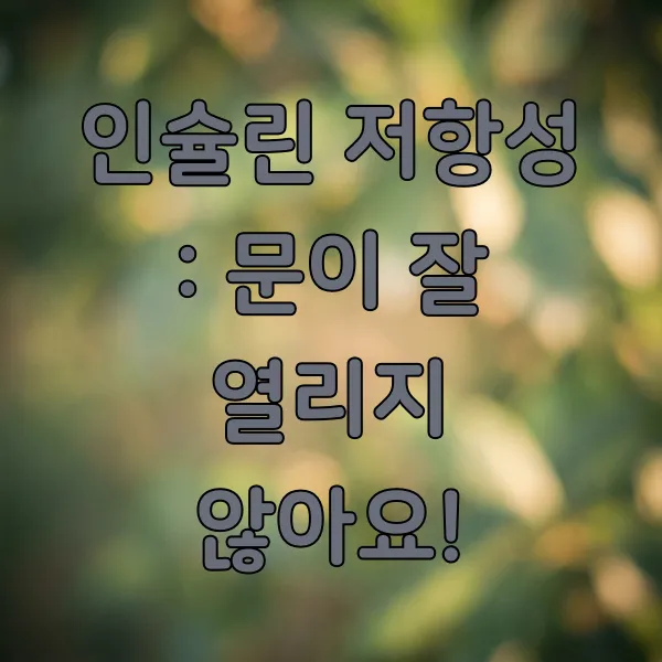 우리 몸에는 혈당을 조절해주는 '인슐린'이라는 호르몬이 정말 중요한 역할을 하거든요. 이 인슐린이 세포 문을 열어서 혈액 속 포도당을 에너지로 쓰게 만들어 주는데, 세포들이 이 인슐린에 잘 반응하지 않는 상태를 인슐린 저항성 이라고 불러요. 마치 문이 덜컥거려서 잘 열리지 않는 것처럼 말이죠!